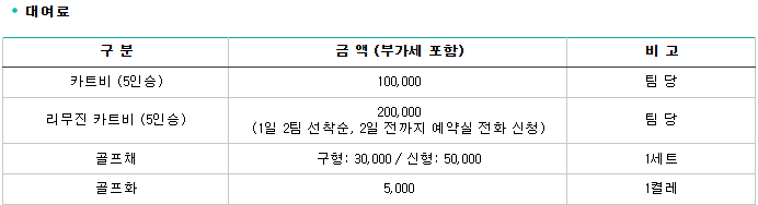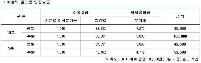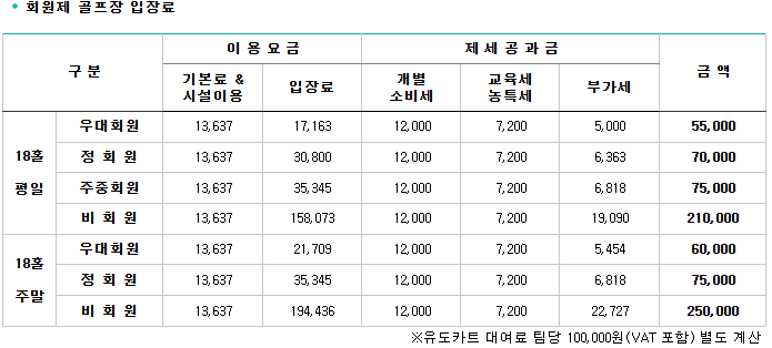 <가야CC 요금 안내>