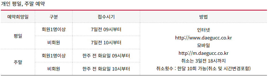 - 예약팀수 변경(증감)시 8일 전까지 예약실로 문의 바랍니다