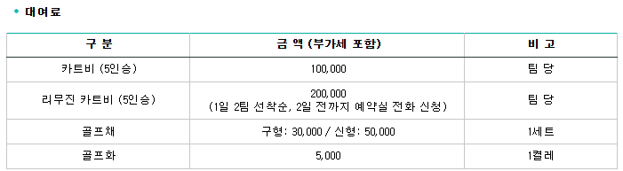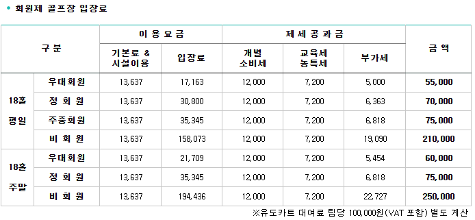- 우대회원 그린피 주중 55,000원/ 주말 60,000원