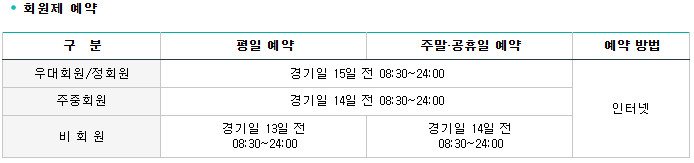 - 대기, 비즈니스, 회원의 날 예약시 정회원보다 선순위