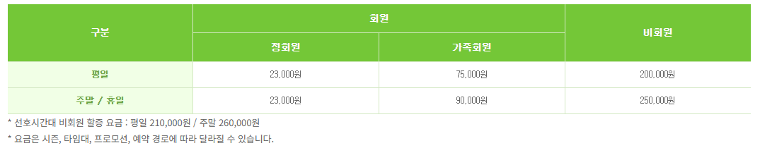 - 정회원 그린피 주중/ 주말 23,000원