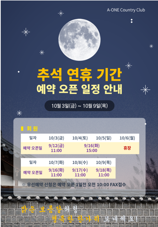 <에이원CC 추석 연휴 예약일자 변경 안내>