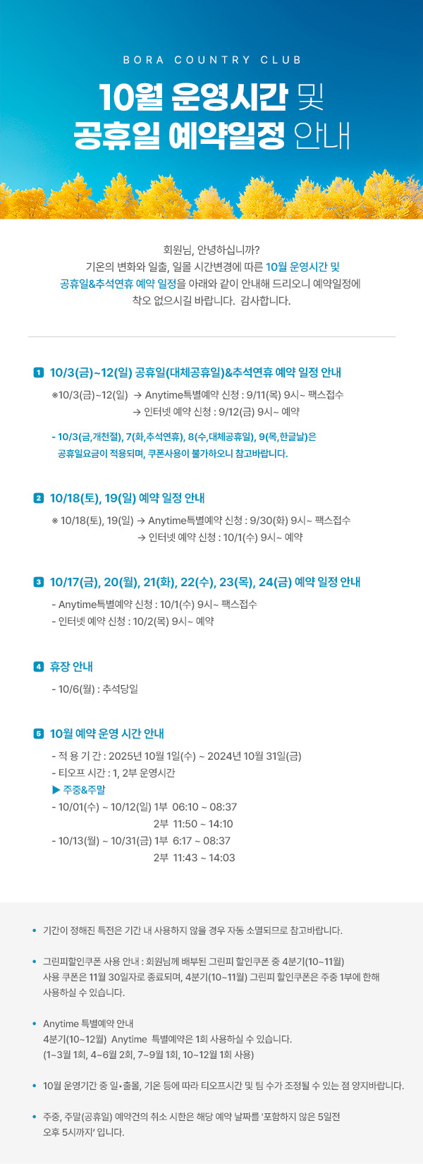 <보라CC 10월 운영시간 안내>