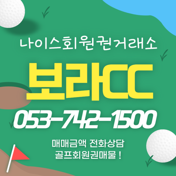 보라CC 회원권에 관심있으신 분은 나이스회원권거래소로 문의주시면