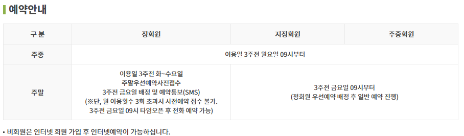 (정회원 우선 예약 배정 후 일반 예약 진행)