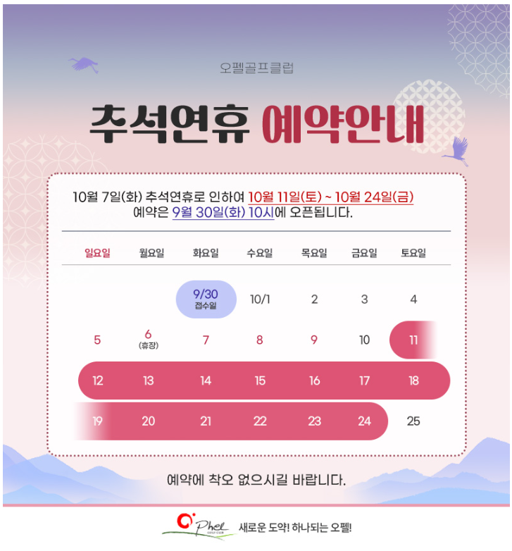 <오펠CC 추석 연휴 안내>