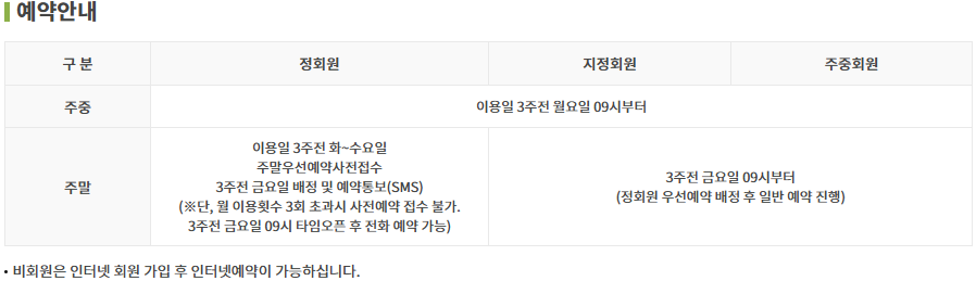 (정회원 우선 예약 배정 후 일반 예약 진행)