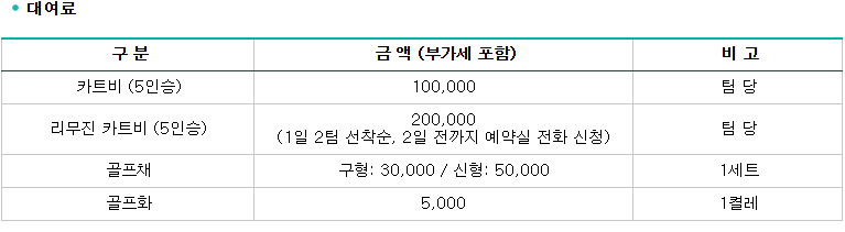 <가야CC 요금 안내>