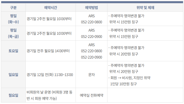 <울산CC 예약 안내>
