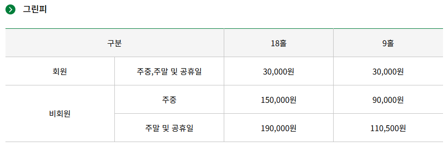 - 정회원 그린피 주중/ 주말 30,000원