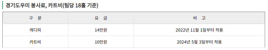 <팔공CC 요금 안내>
