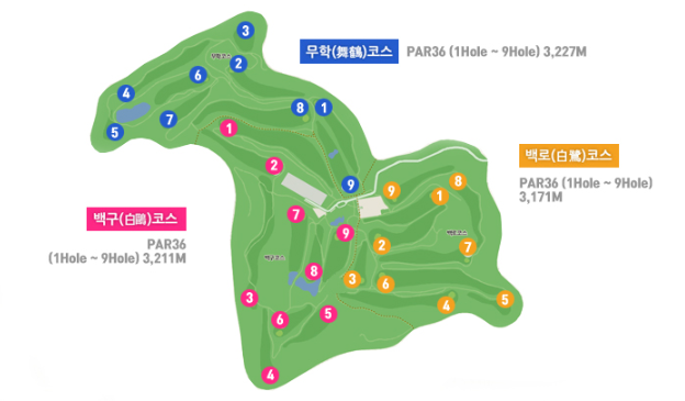 각각의 특성과 색깔을 지닌 백로, 무학, 백구 세 코스가 제공하는