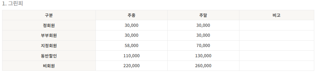 - 정회원 그린피 주중/ 주말 30,000원