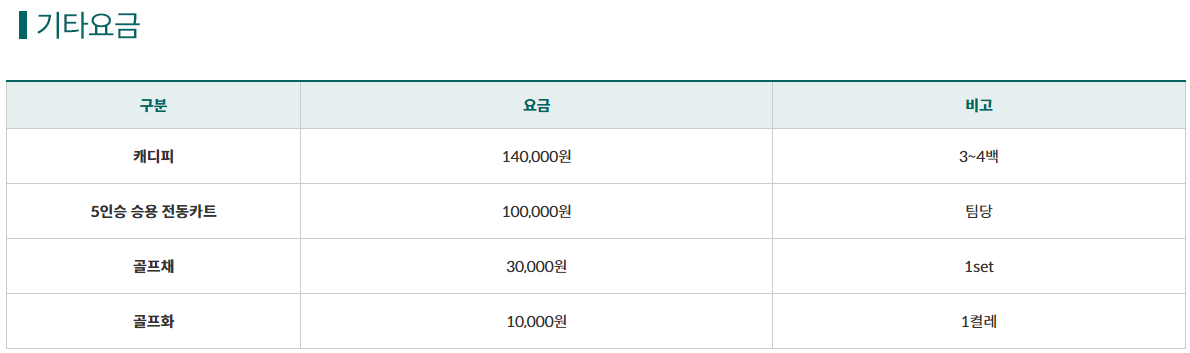<통도CC 요금 안내>