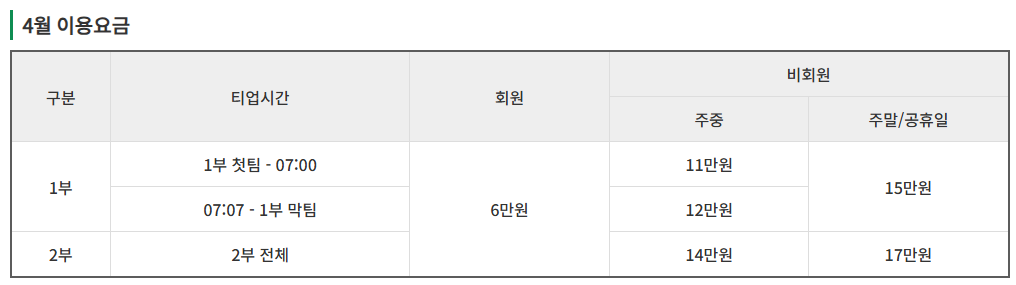 <팔공CC 요금 안내>