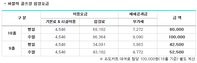 <가야CC 요금 안내>