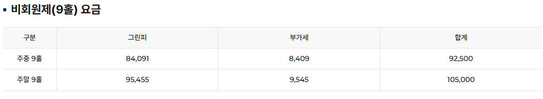 - 지정회원 그린피 주중 85,000원/ 주말 100,000원